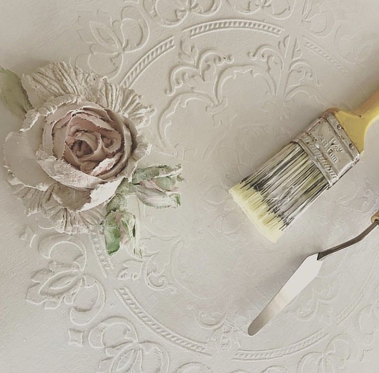 Этот трафарет моя особая Любовь! С помощью штукатурки наносила рисунок с помощью этого трафарета на стену, декорировала дверки на шкафу, тоже объёмный рисунок. Декорировала чехлы для подушек с помощью текстильной краски. Рисунок получается очень ажурным. На стене выглядит будто кружево.