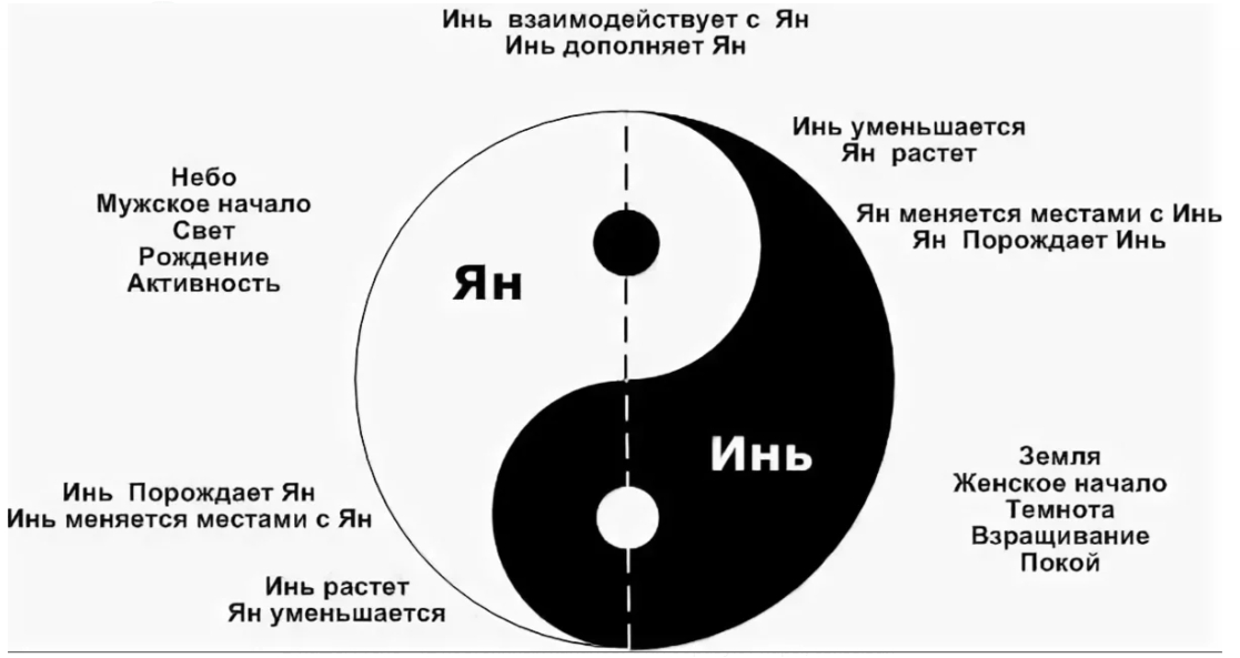 А человек не может быть Ин или Ян, человек – это Тайцзы, то есть целостное существо, содержащее в себе обе энергии. Мы же привыкли, что мужчина должен быть напористым, а женщина покладистой, но это лишь социальные убеждения. В рамках китайской философии человек наделён как иньской, так и янской энергиями, и между ними не должно быть баланса. Потому как баланс есть застывшая форма, а Тайцзы говорит о постоянной динамике, подобно смене времён года.