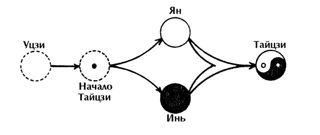 Энергия Инь и энергия Ян находятся в постоянном круговороте, одно проистекает из другого, образуя Тайцзы. Лето переходит в осень, затем в зиму и весну; день переходит в ночь, а ночь затем становится днём.