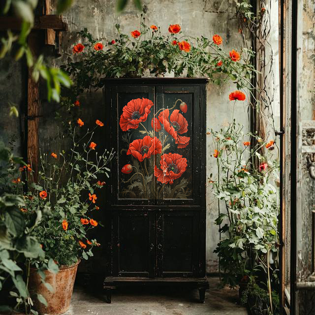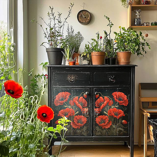Притягательные маки, созданные нами в нейросетях с улучшенным для печати качеством, могут стать ярким панно или декоративными элементами в мебели, зеркальных и стеклянных объектах.